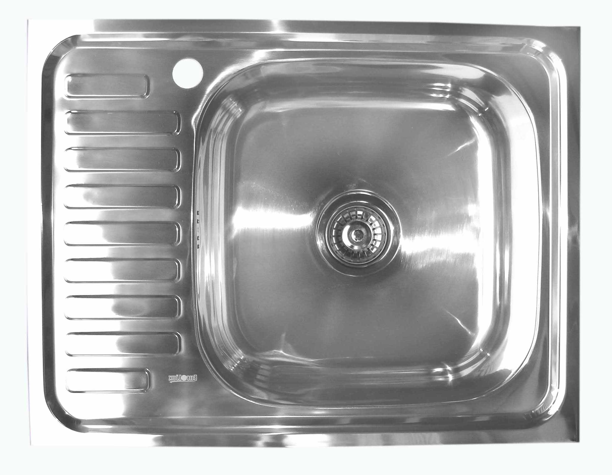 Nerūdijančio plieno plautuvė D6060P kairė DEKOR uždedama su sifo