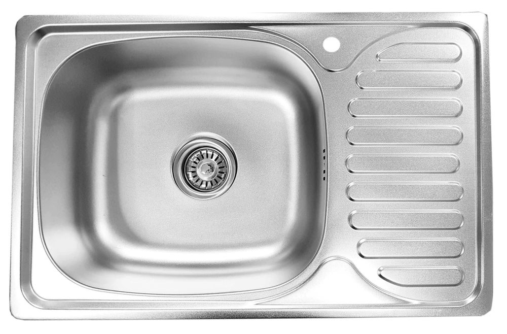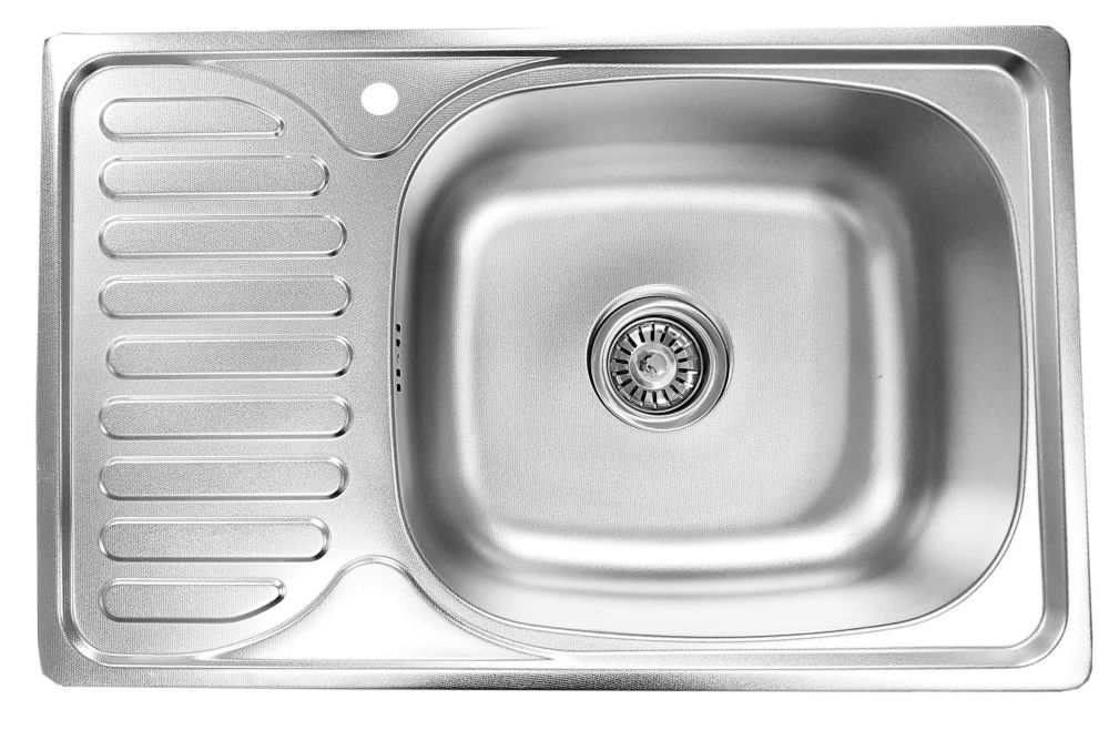 Nerūdijančio plieno plautuvė D7750P 770x500 0.8 dešinė su sifonu