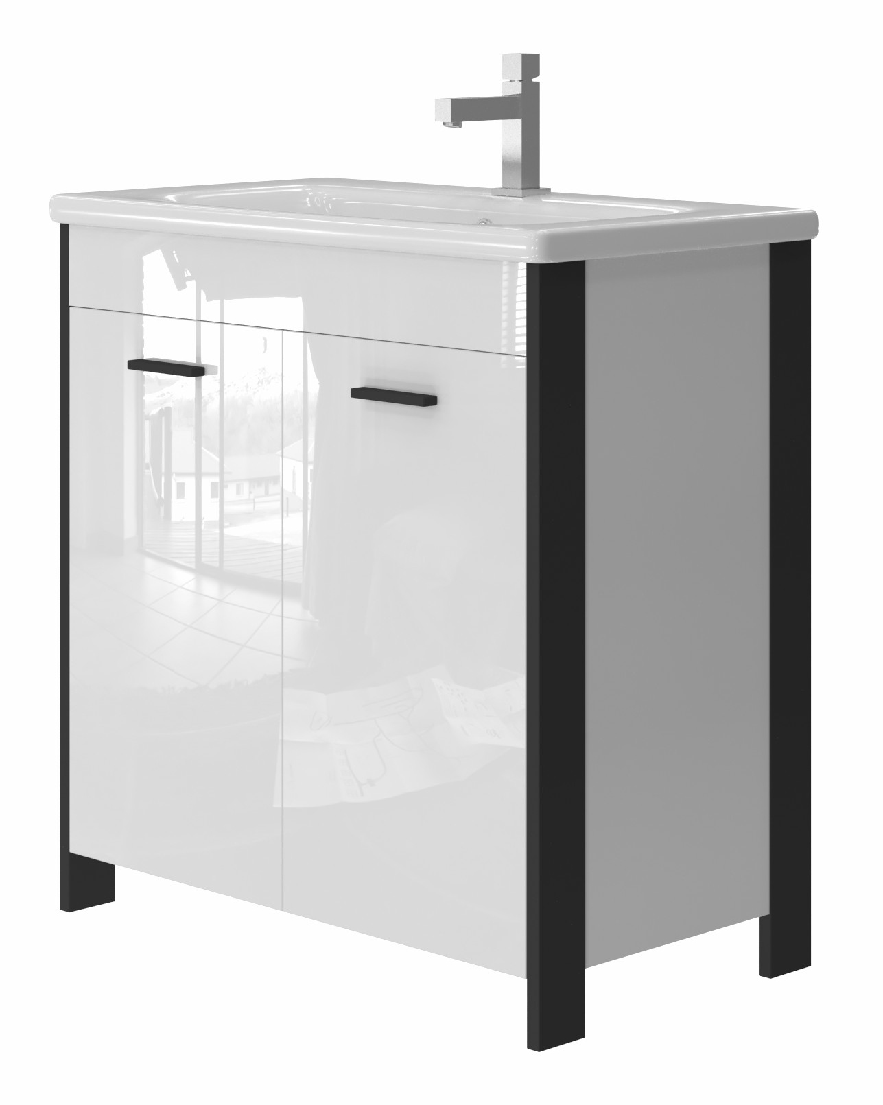 Vonios kambario spintelė su praustuvu BROOKLYN BR-80 juoda