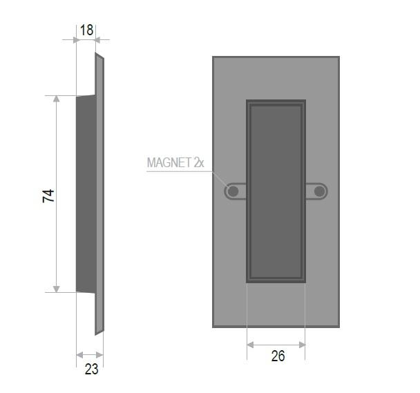 Stumdomų durų rankena skirta vidaus patalpų min 40mm storio durims. Rankenos tvirtinamos medvaržčiais, kuriuos paslepia magnetų laikoma apdaila.Pagaminta iš ZAMAK + plieno.