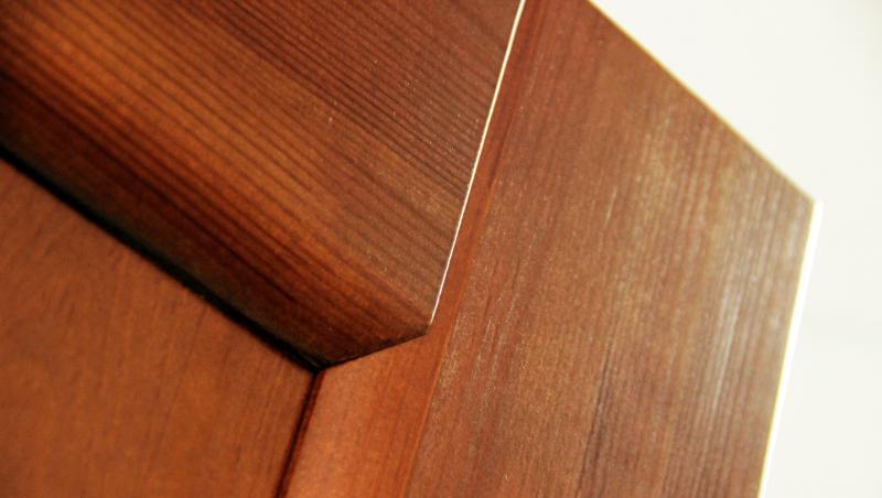 Durų apvadai pagaminti iš klijuotos pušies masyvo.