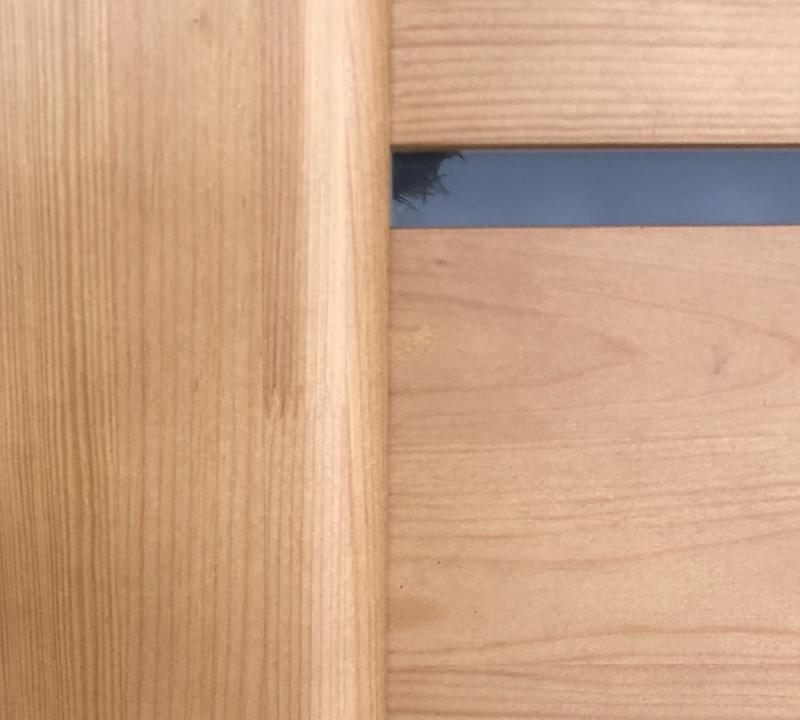 Durų apvadai pagaminti iš klijuotos pušies masyvo.