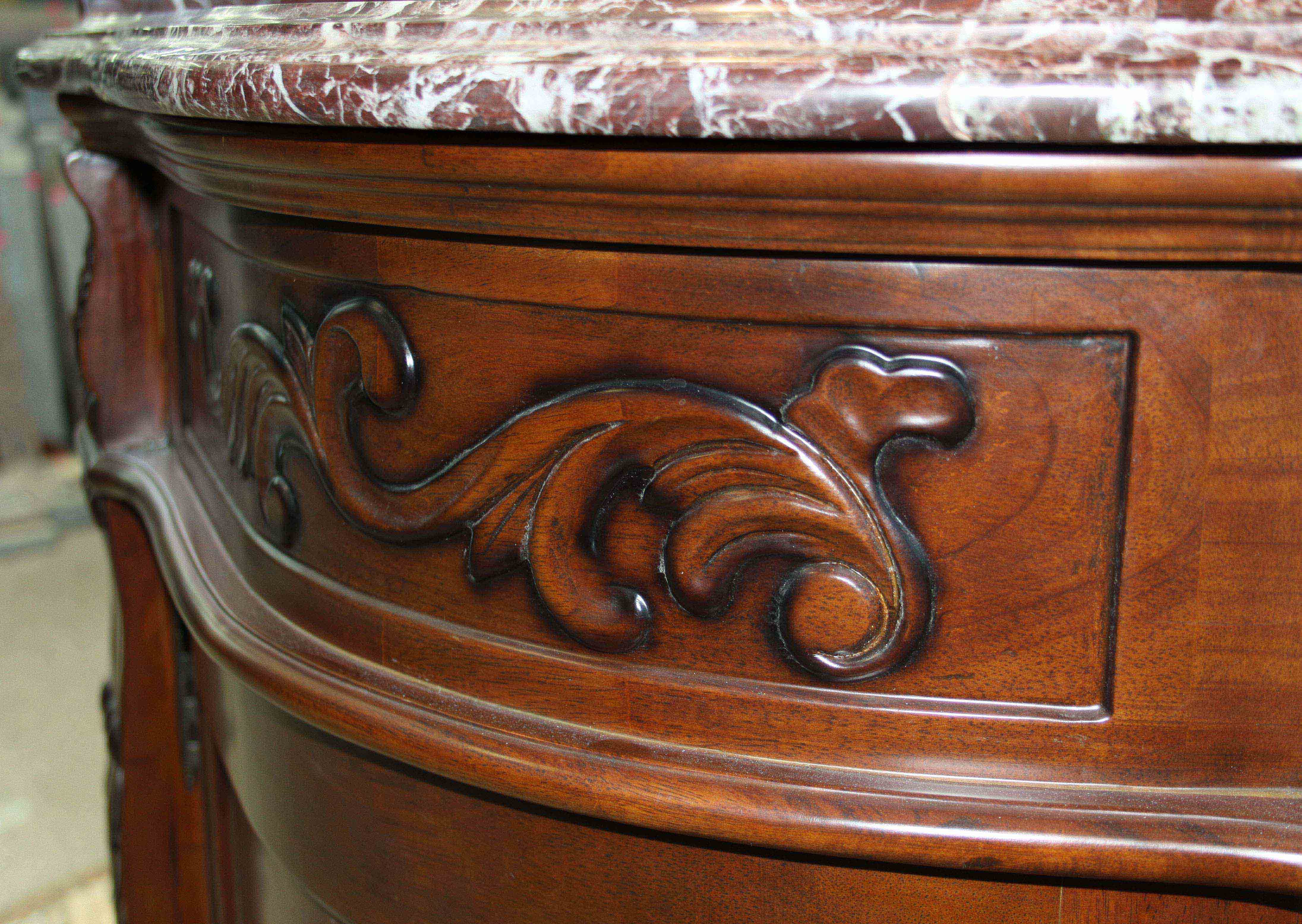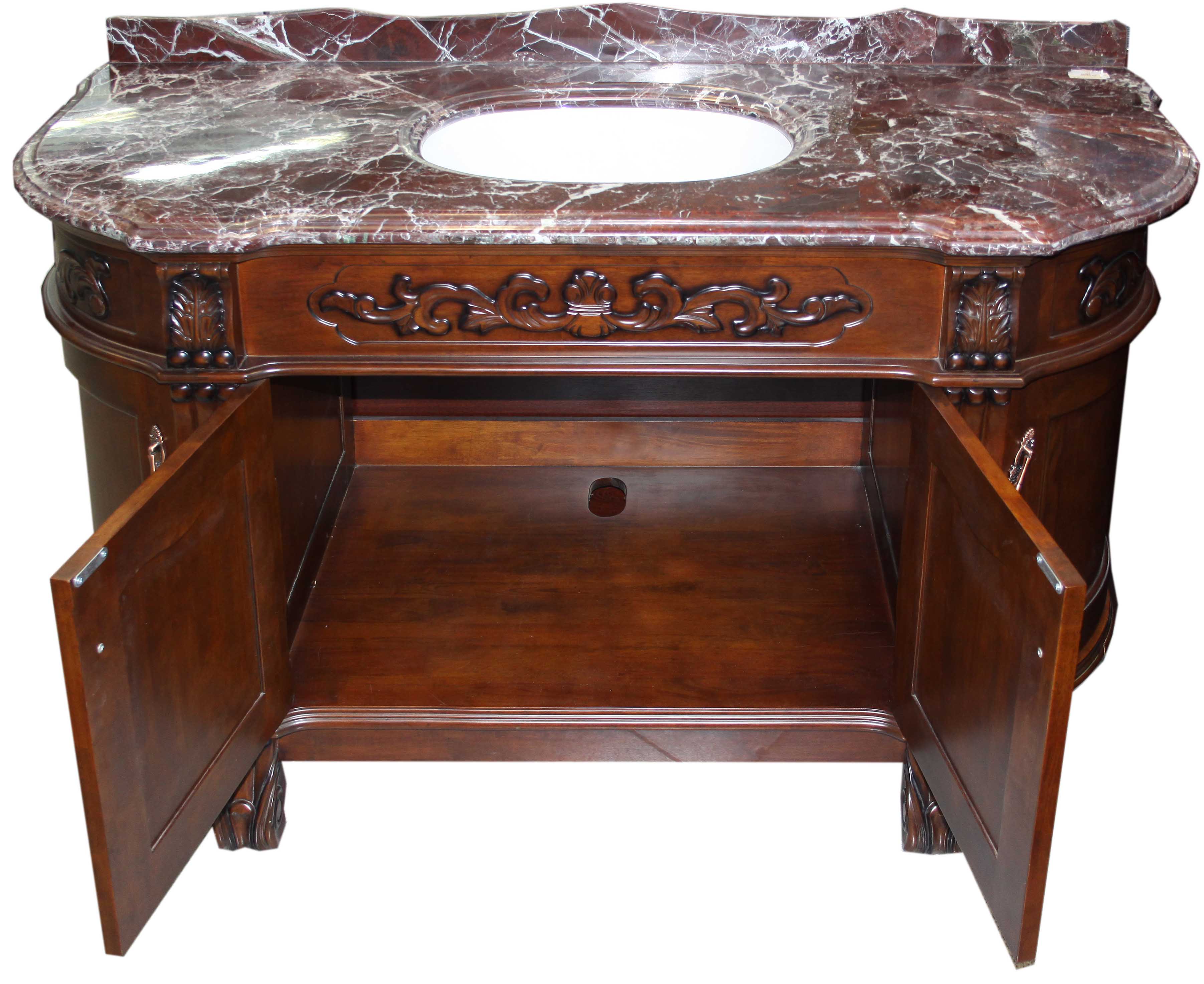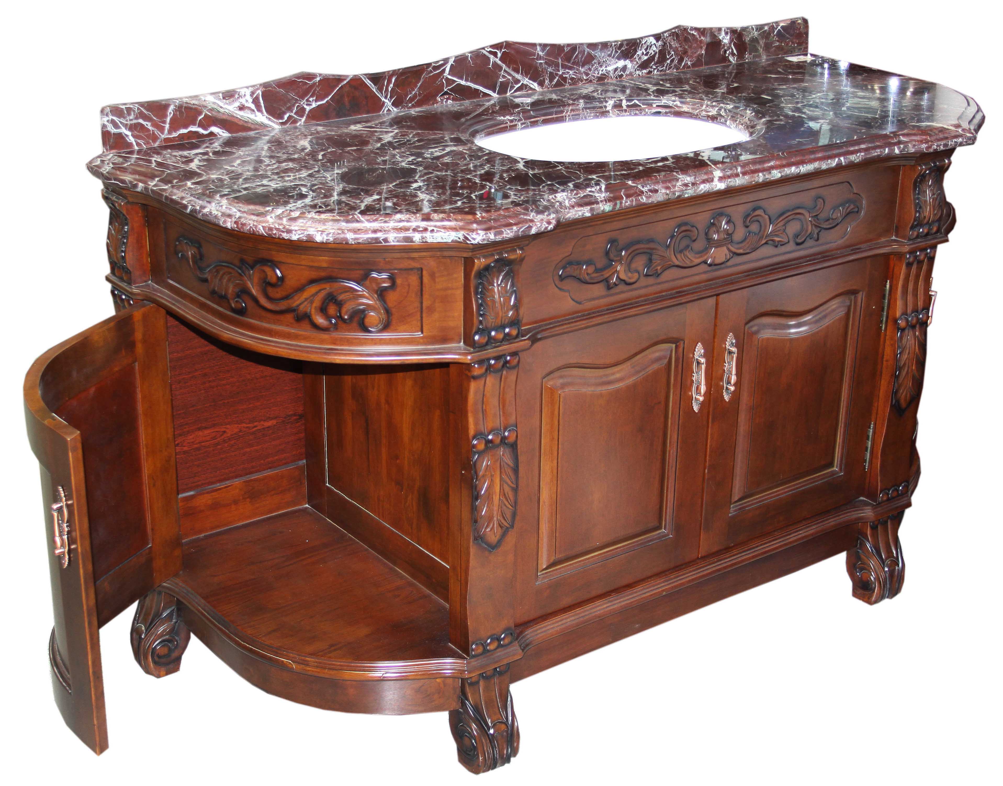 Medžio masyvo vonios kambario pastatoma apatinė spintelė su natūralaus marmuro stalviršiu,
