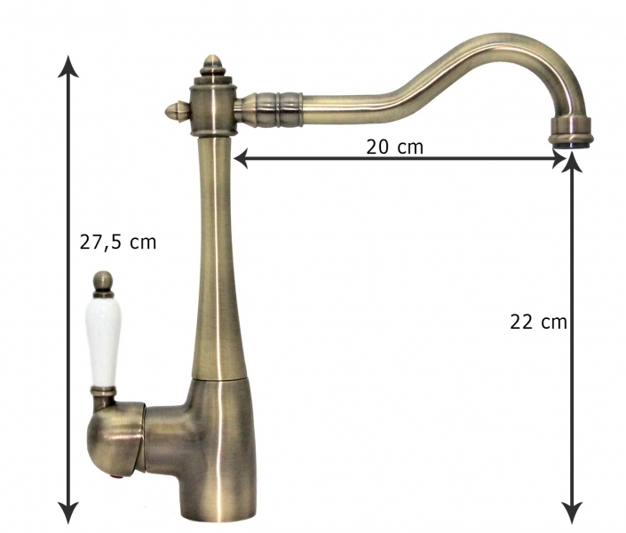 Retro stiliaus virtuvinis maišytuvas viena rankenėle ir paaukštintu snapu.