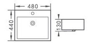 Keramikinis uždedamas praustuvas su 40 mm skyle maišytuvui.