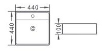 Keramikinis padedamas praustuvas su 40 mm skyle maišytuvui.