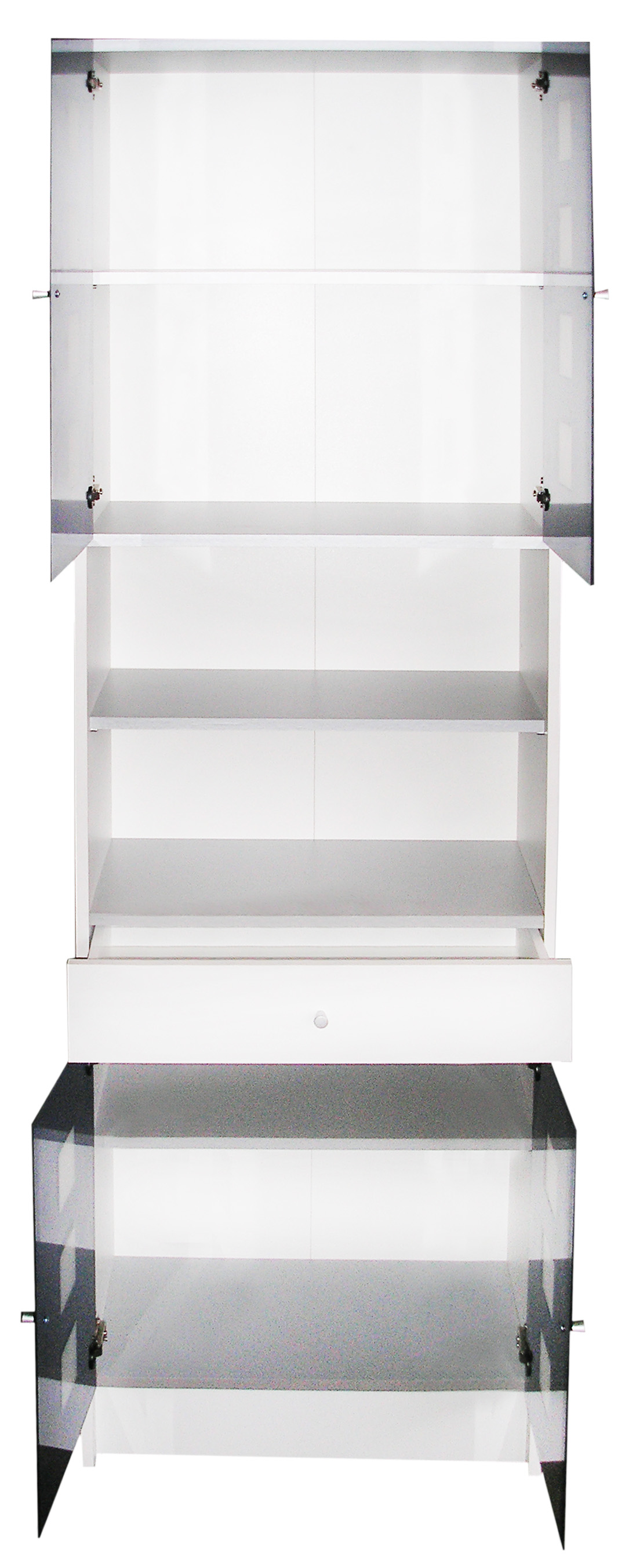 Universali pastatoma spintelė stiklinėmis durelėmis.