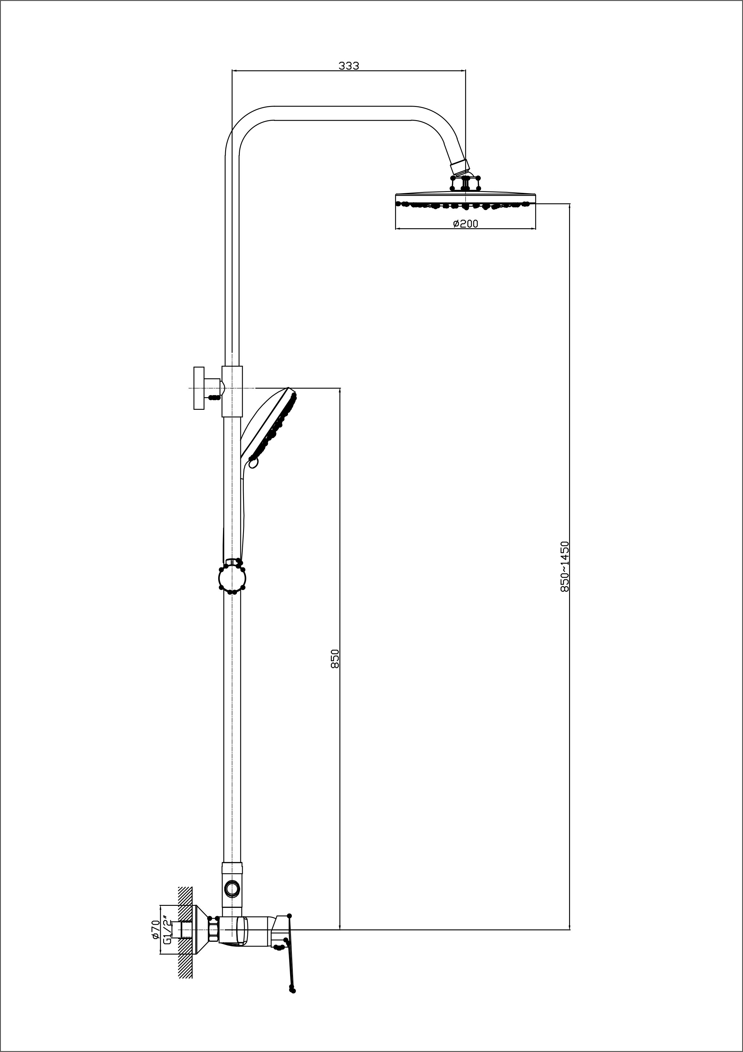 dušo stovas (aukštis reguliuojamas ribose 0.80-1.10 m),
