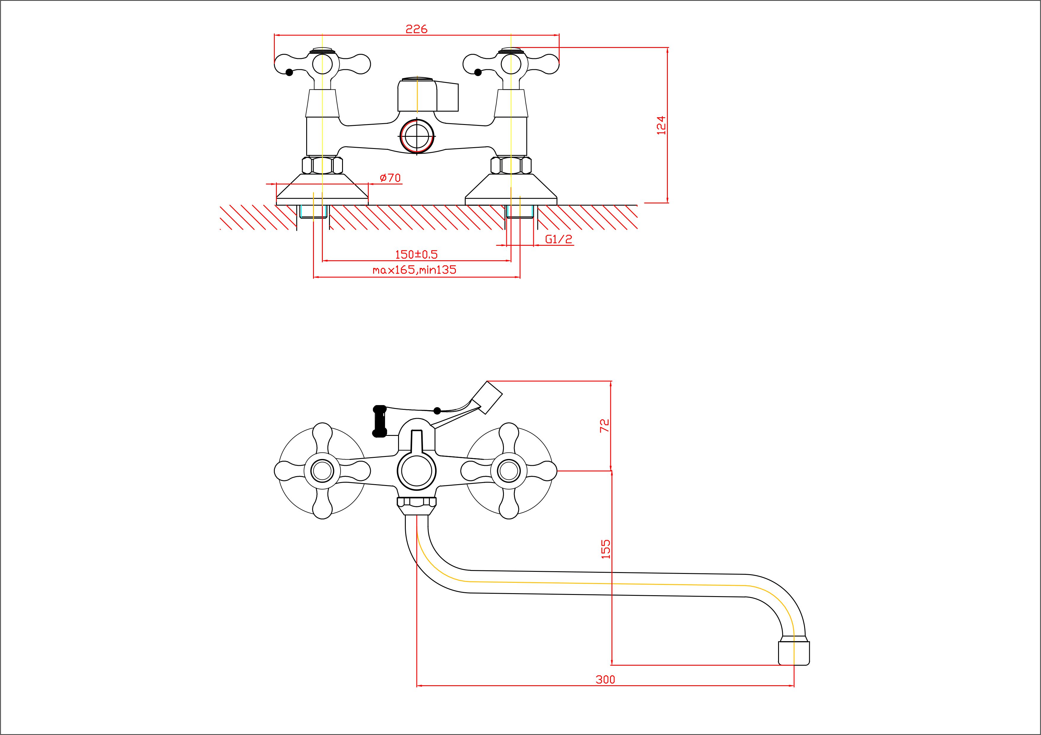 Vonios maišytuvas ilgu lenktu (S formos) snapu. Snapo ilgis 30 cm.