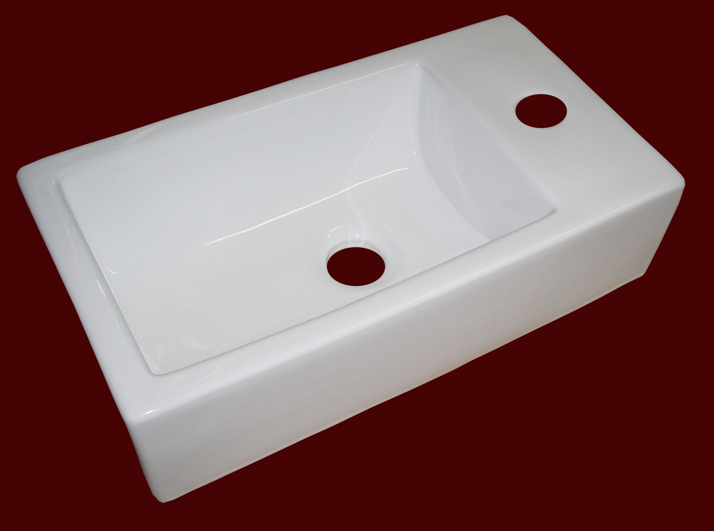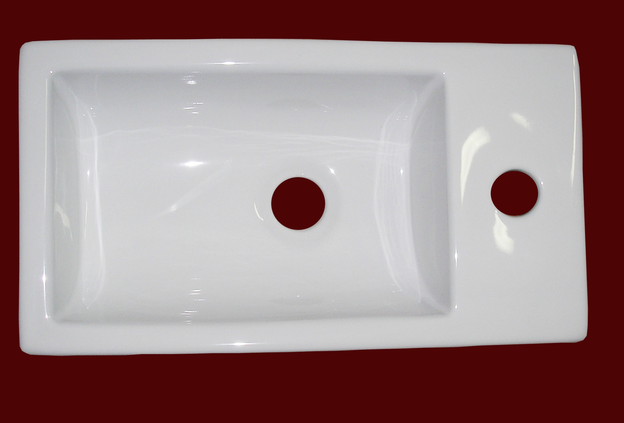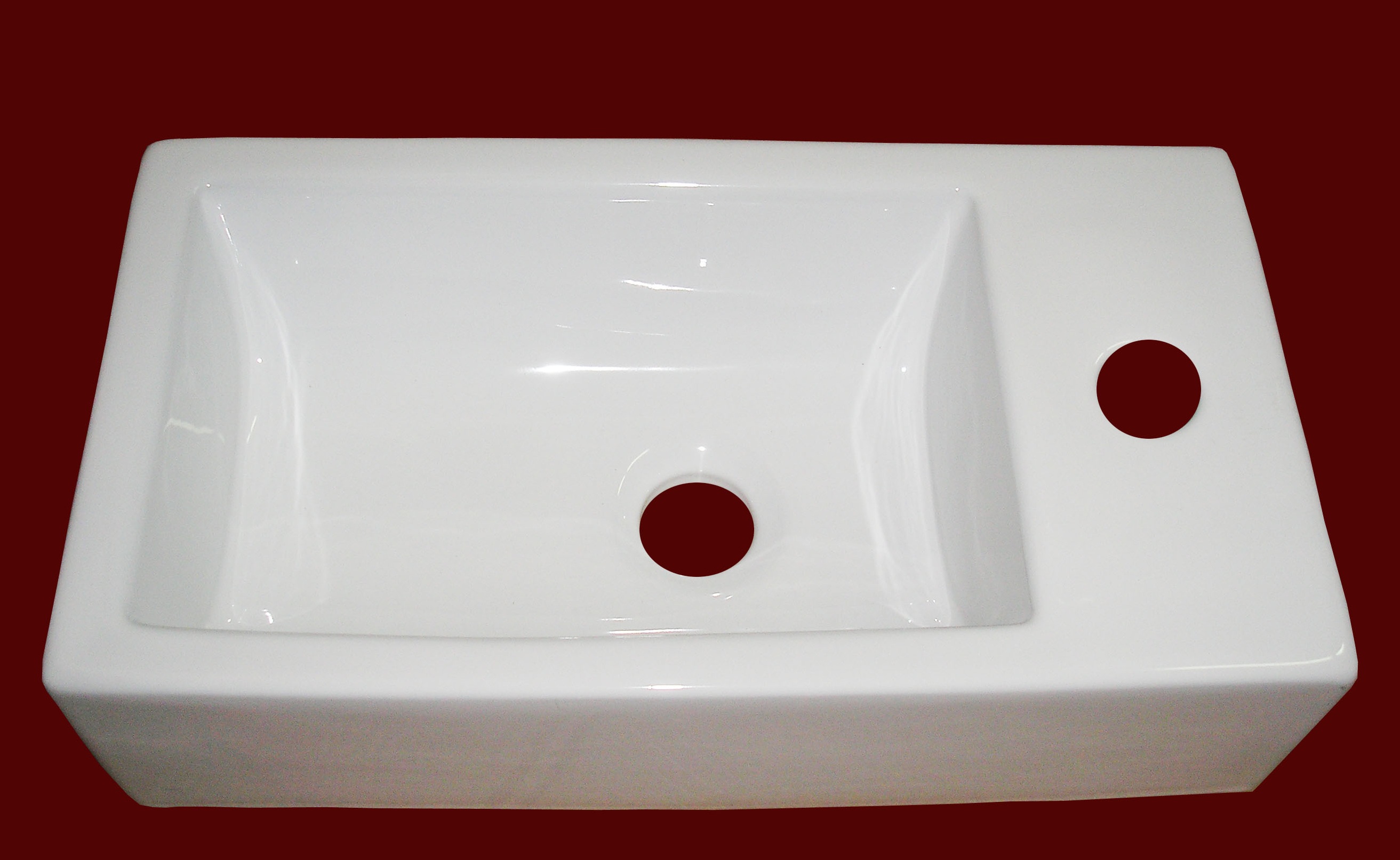 Padedamas keramikinis praustuvas su skyle maišytuvui.