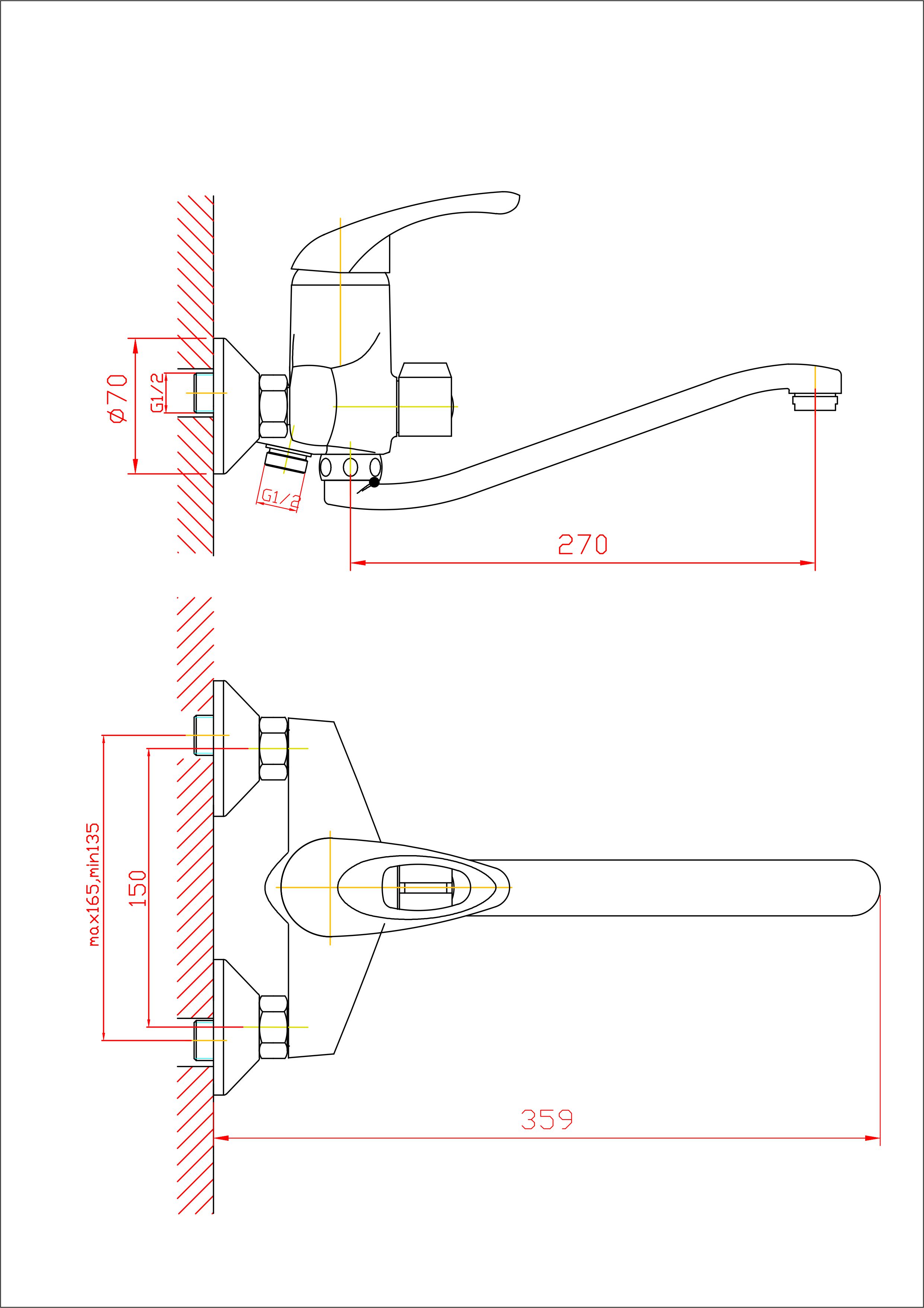 Vonios maišytuvas ilgu lenktu (S formos), snapu (snapo ilgis 27 cm).