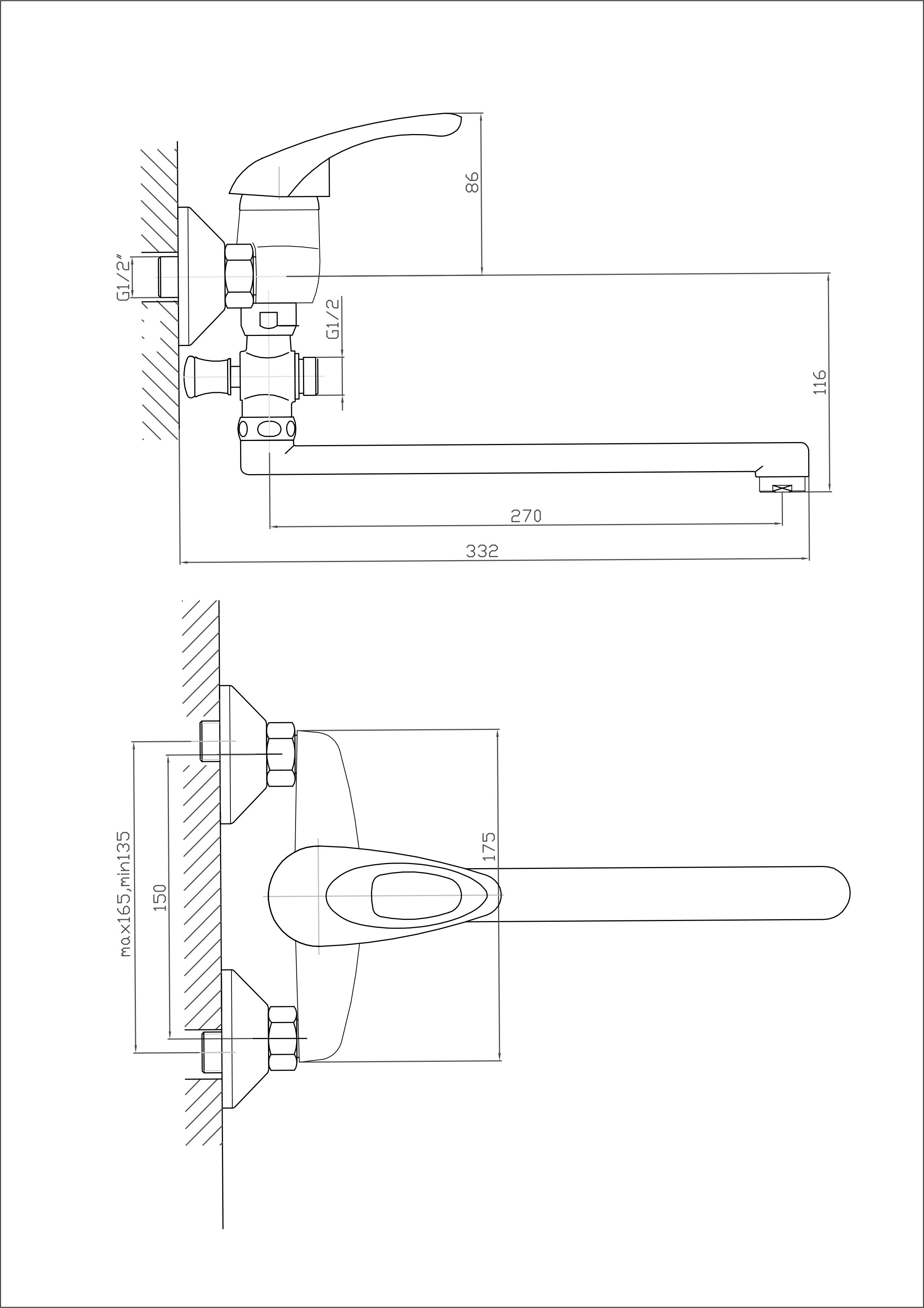Vonios maišytuvas ilgu snapu (snapo ilgis 30 cm).