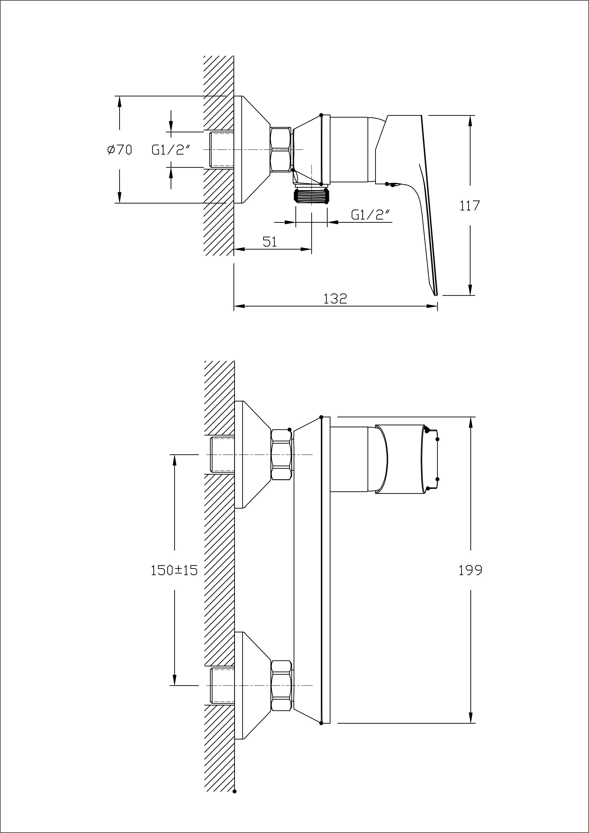 Vienos svirties dušo maišytuvas be snapelio.