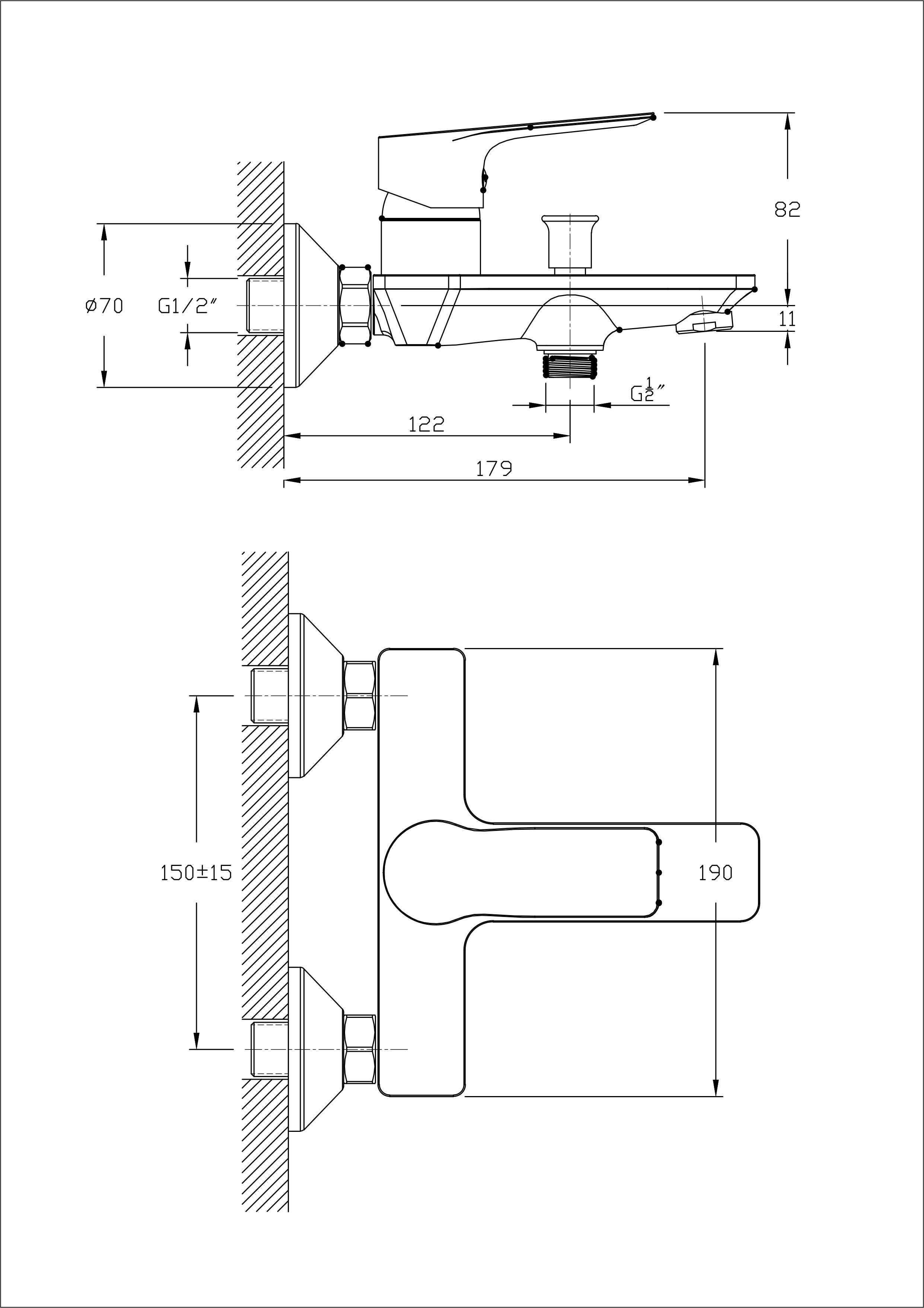 Dušo maišytuvas trumpu snapu (snapo ilgis 12 cm).