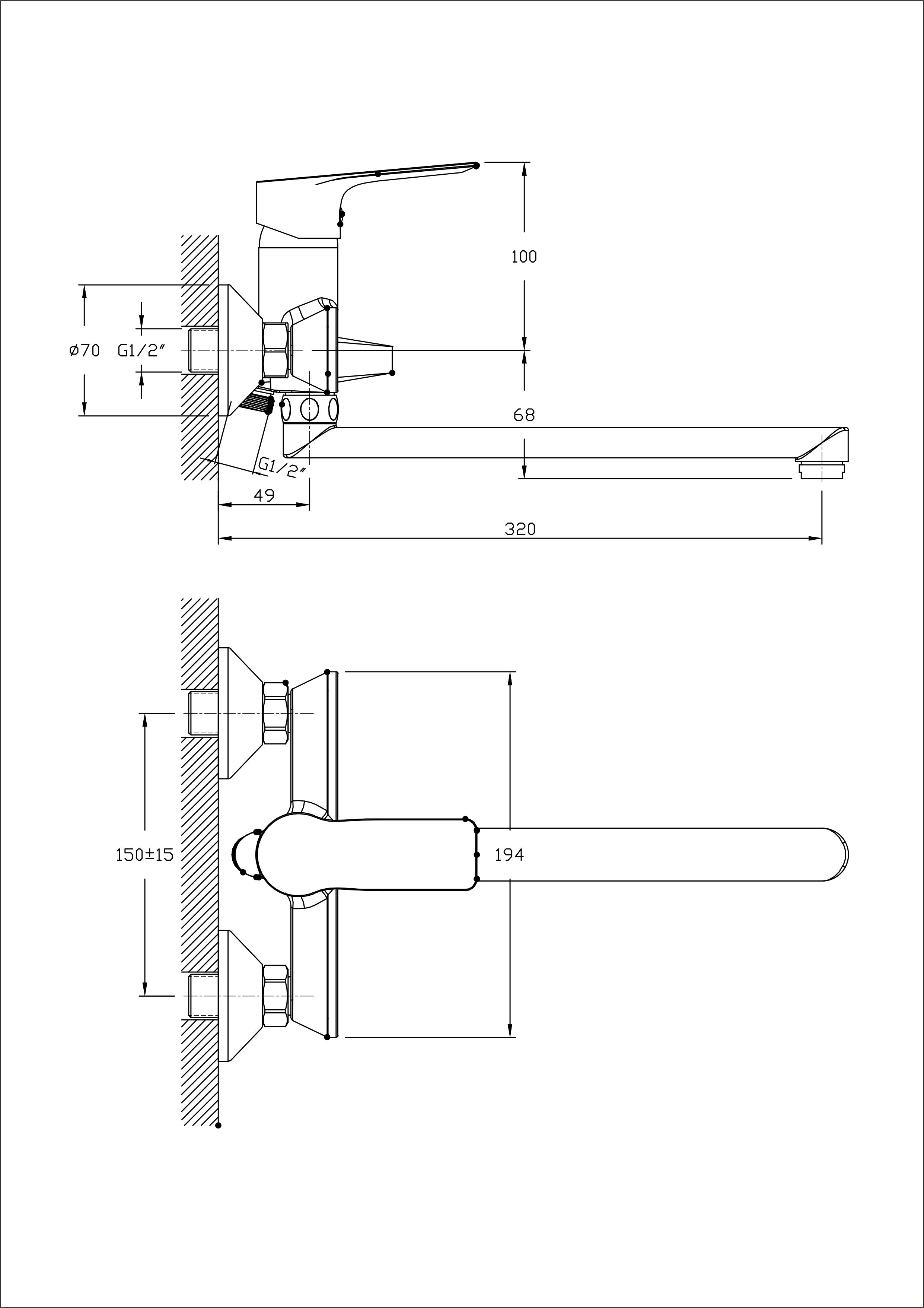 Vienos svirties vonios maišytuvas ilgu tiesiu (L formos snapu).