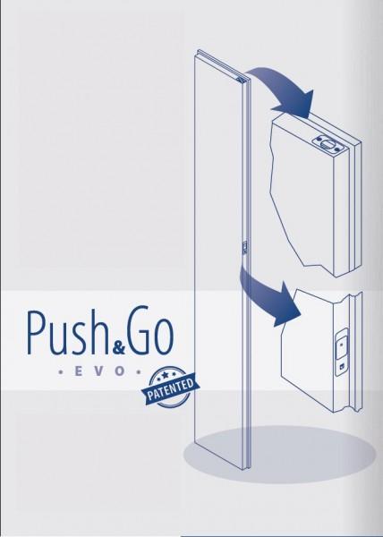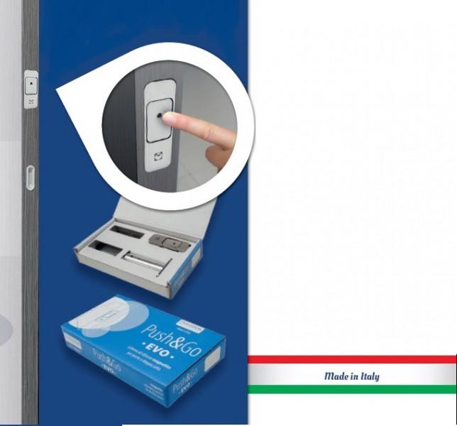 Magnetinis pasyvių durų fiksatorius. Push & Go EVO leidžia atblokuoti pasyvią varčią lengvu mygtuko paspaudimu. Dėka magnetinės staktos plokštelės durys automatiškai fiksuojasi vos jas užvėrus. Sistema ypač tinka ligononės, mokyklose, slaugos namuose, prekybos ir pramogu centruose, kur reikalingas greitas ir lengvas durų atvėrymas. Dėka Push & Go EVO sistemos duris gali atverti net vaikas ar senyvo amžiaus žmogus, taip pat žmogus neįgaliojo vežymelyje, nes ši sistema nereikalauja didesnių pastangų ir montuojama optimaliame aukštyje.