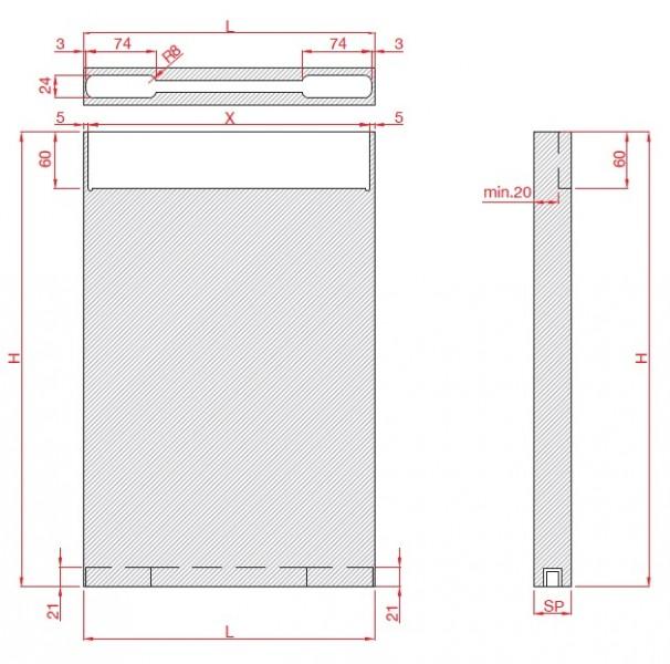 Maksimalus galimas varčios plotis 1100 mm (maksimalus dengiamas angos plotis 1000 mm) arba 1800 mm (maksimalus dengiamas angos plotis 1700 mm)