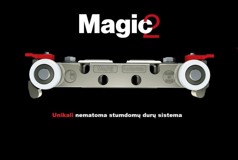 Magic2 – tai inovatyvi, minimalistinė, italų gamintojo Terno Scorrevoli, sukurta bei užpatentuota “nematoma” stumdomų durų sistema su soft closing – “minkšto” uždarymo funkcija. Stumdomų durų sistema skirta tiek medinėms, tiek stiklinėms durims.