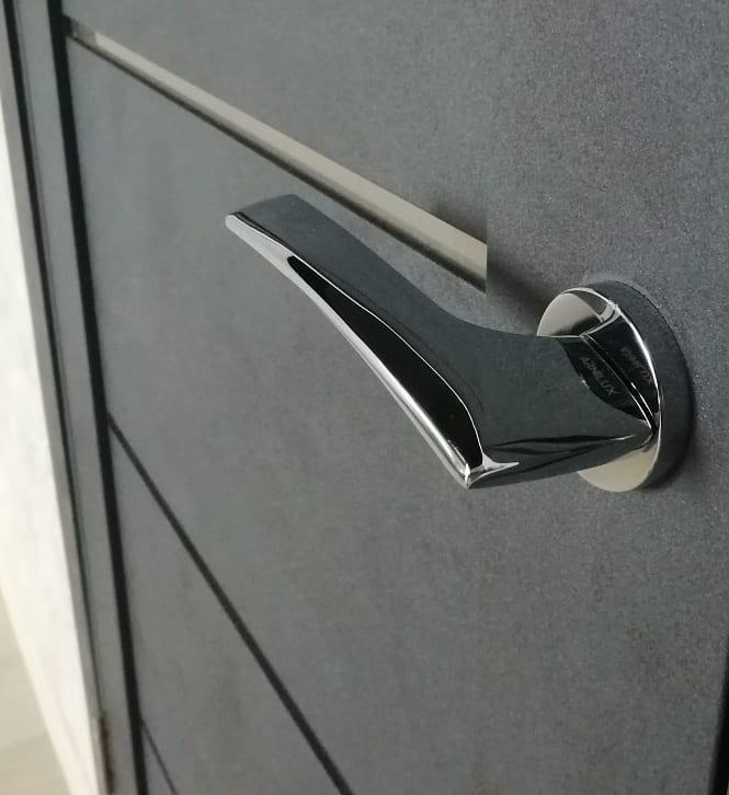 STANDARTINIAME DURŲ KOMPLEKTE: Varčia, reguliuojama stakta su sandarinimo tarpine, tylaus uždarymo spyna su plokštele, vyriai.