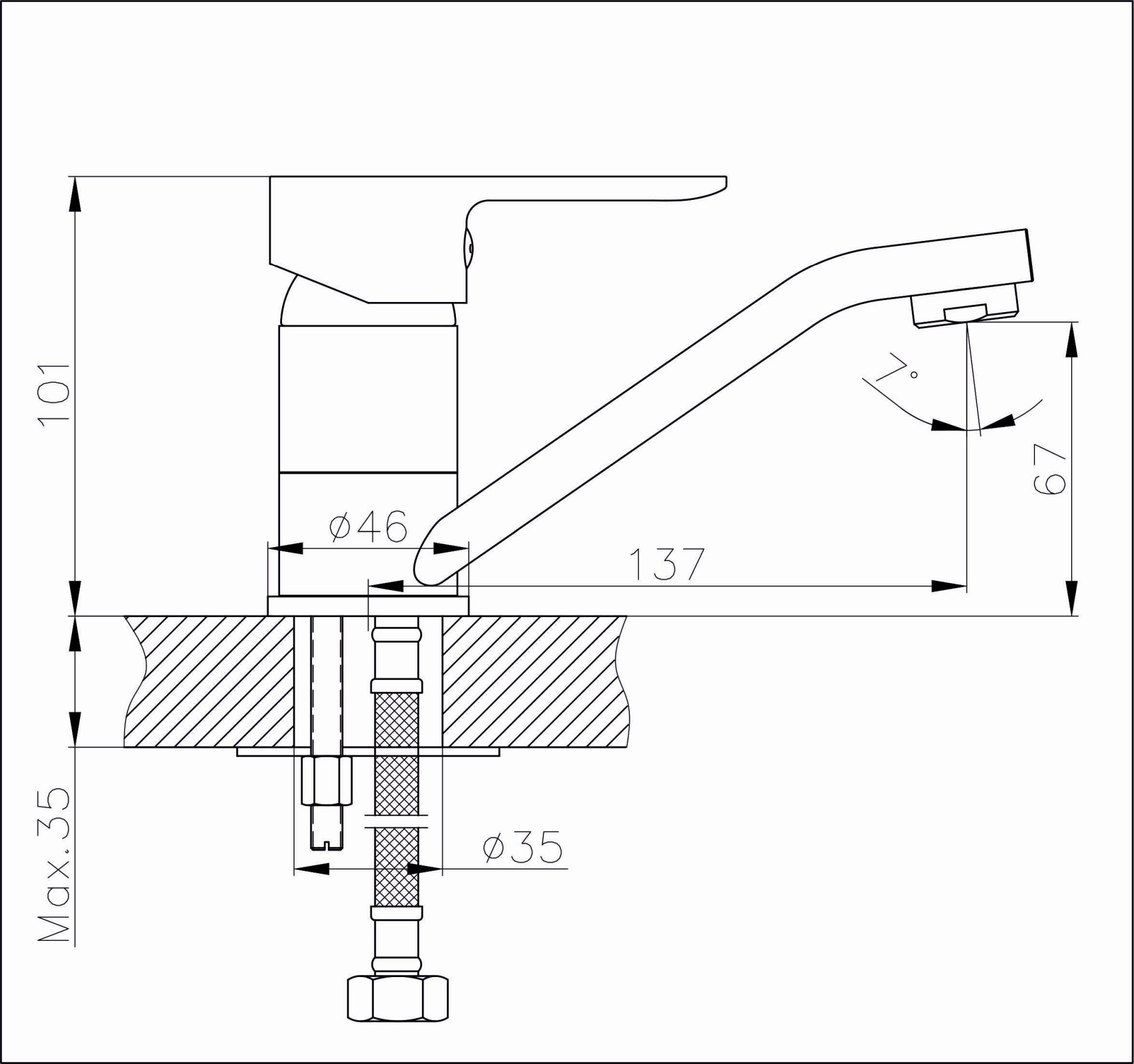 Atstumas nuo snapelio iki stalviršio 7 cm.