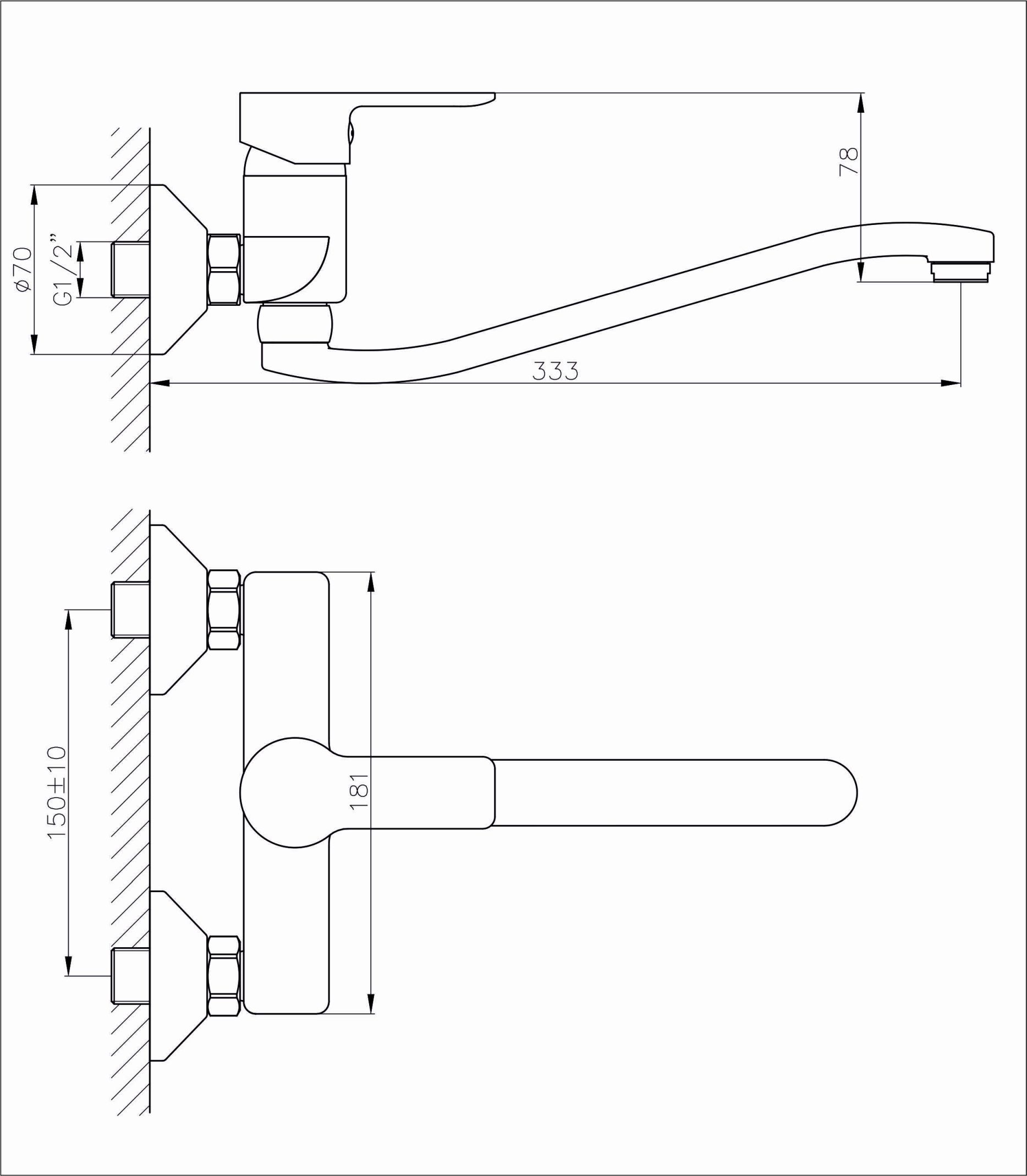 Vienos svirties vonios maišytuvas ilgu lenktu snapu (snapo ilgis 28 cm).