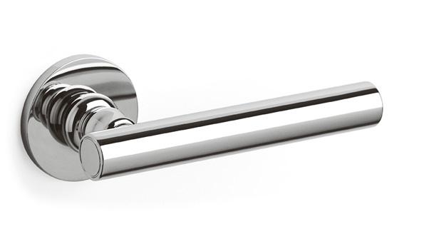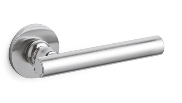 Rankena skirta vidaus patalpų 38-45mm storio durims. Rankenos tinka Europinio (DIN) standarto spynoms. Plonos 5 mm rozetės.