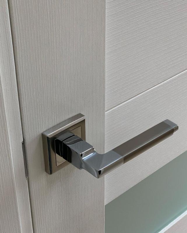 STANDARTINIAME DURŲ KOMPLEKTE: Varčia, reguliuojama stakta su sandarinimo tarpine, tylaus uždarymo spyna su plokštele, vyriai.