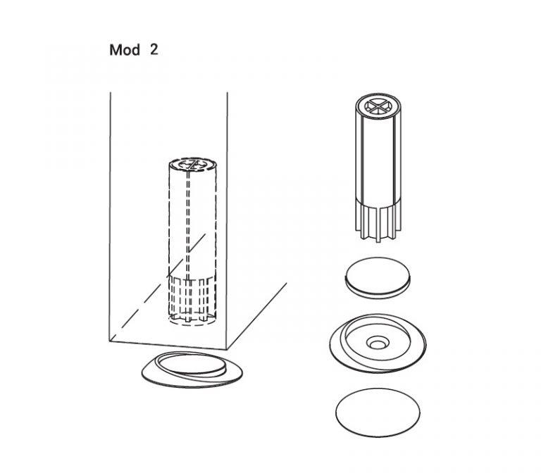 Pagrindinė atramos dalis yra įfrezuojama į durų varčią, išgręžiant 14 mm diametro ir 47 mm gylio angą. Atsakomoji atramos dalis, kuri yra 4.2 mm aukščio plokštelė, priklijuojama arba medvaržčiais pritvirtinama prie grindų. Ši plokštelė yra visiškai nepastebima ir netrukdo nei judėjimui nei grindų valymo darbams.