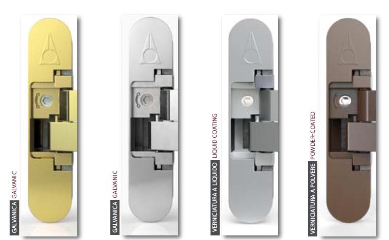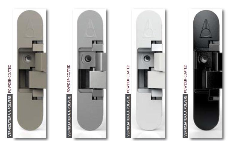 Paslėpiami (uždarius duris nematomi) vyriai ANSELMI AN 108 3D SC45 su integruota savaiminio pritraukimo ir švelnaus uždarymo sistema skirti vidaus patalpų medinėms durims be užlaidos su medine stakta.