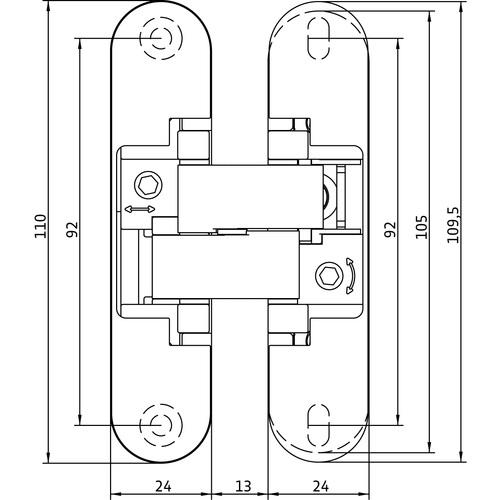 Reguliavimas: vertikaliai +/-2,5mm, horizontaliai +/-1,5mm, į gylį +/-1mm.