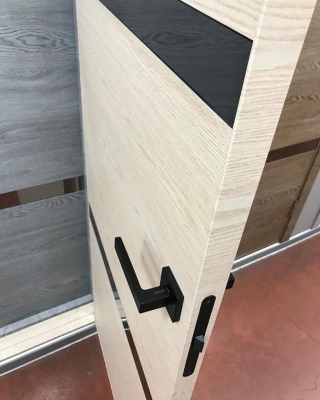 STANDARTINIAME DURŲ KOMPLEKTE: Varčia, reguliuojama stakta su sandarinimo tarpine, tylaus uždarymo spyna su plokštele, vyriai.