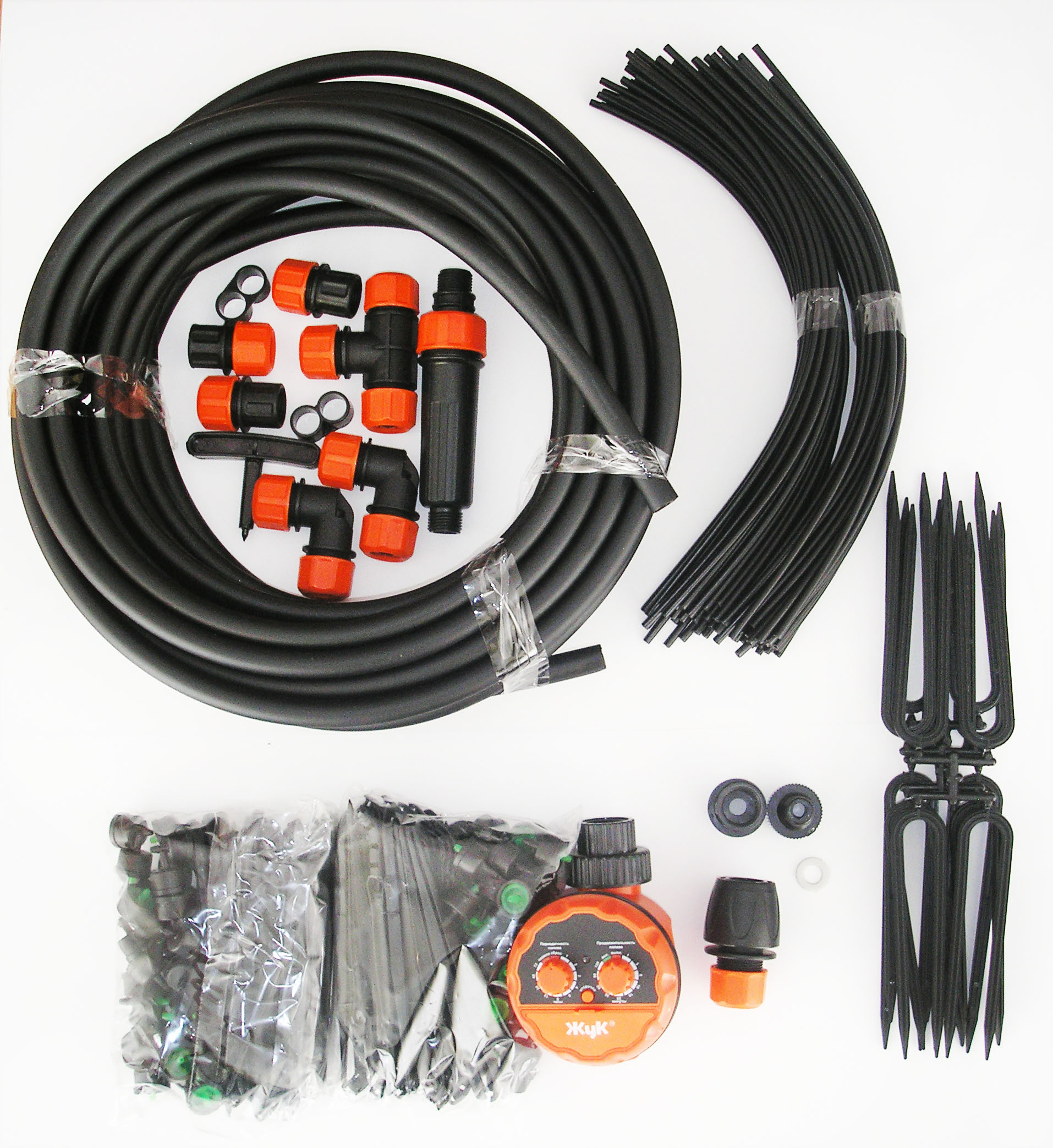 Laistymo sistema su laikmačiu, skirta pajungti nuo vandentiekio, 30 vnt augalų.