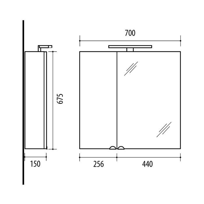 700 x 675 x 150 mm (plotis, aukštis, gylis)