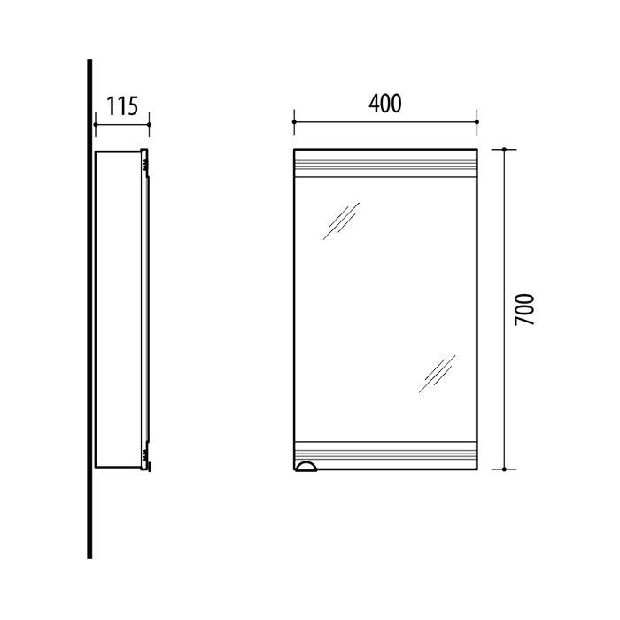 400 x 700 x 115 mm (plotis, aukštis, gylis)