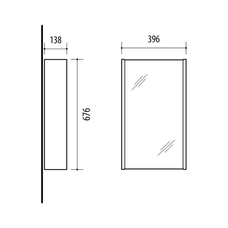396 x 750 x 130 mm (plotis, aukštis, gylis)