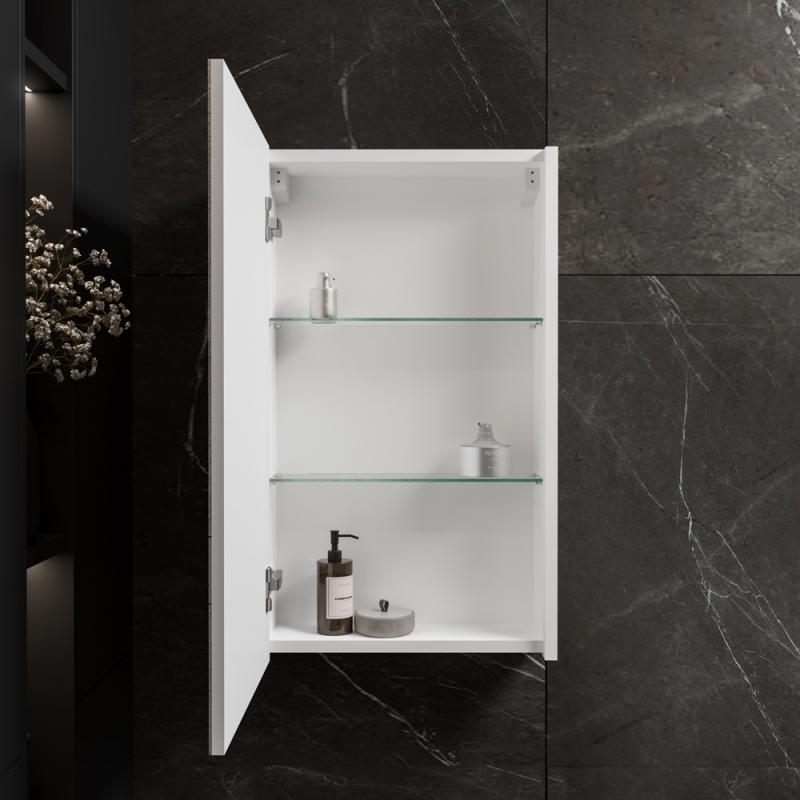 Kompaktiška, estetiška ir funkcionali vonios kambario spintelė, sukurta patogiam kasdieniam naudojimui. Tobulai subalansuotas spintelės dydis suteikia galimybę ją pakabinti nedidelėje erdvėje, o minimalistinės formos bei spalvos pasirinkimas leidžia spintelę pritaikyti įvairaus stiliaus interjere. Spintelėje įmontuoti švelniai užsidarantys lankstai, kurių dėka durelės varstomos itin tyliai ir sklandžiai. Šią baldų furnitūrą ne tik malonu naudoti – ji taip pat pasižymi ilgesniu naudojimo laikotarpiu, lyginant su įprasta furnitūra. Be to, baldo gamybos metu lankstai yra ne įgręžiami, o įpresuojami – tokiu būdu įtvirtinami tiksliai ir patvariai. Tai ypač svarbu, nes vonios baldai yra intensyviai eksploatuojami, todėl privalo būti patvarūs. Spintelėje rasite reguliuojamo aukščio lentynėles, kurios gali padėti patogiai susidėti įvairių dydžių vonios reikmenis ir jų pakuotes. Vonios spintelė pagaminta iš kokybiškų medžiagų, kurios yra lengvai prižiūrimos, pasitelkiant įprastas valymo priemones.