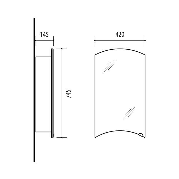 420 x 745 x 145 mm (plotis, aukštis, gylis)