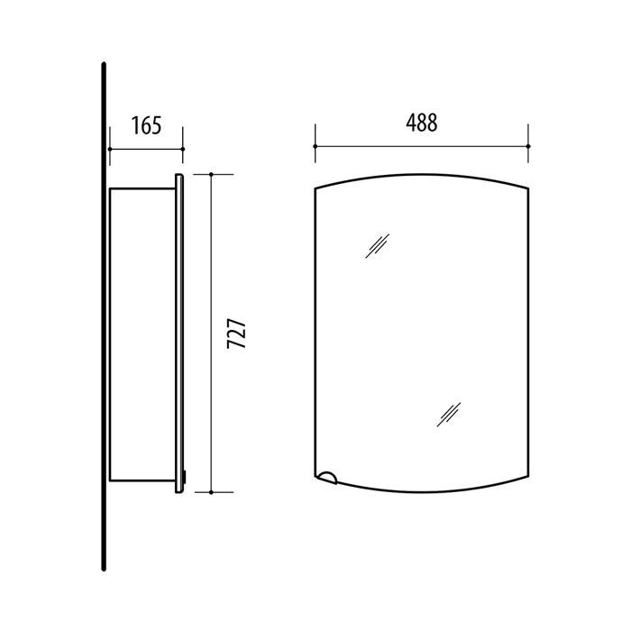 488 x 727 x 165 mm (plotis, aukštis, gylis)