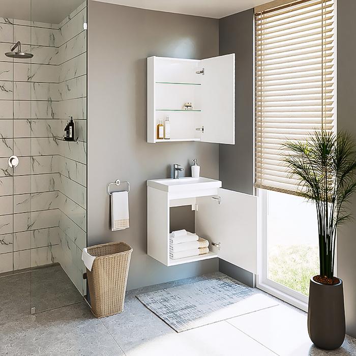 Estetiška ir funkcionali vonios kambario spintelė, sukurta patogiam kasdieniam naudojimui. Minimalistinė forma bei spalvos pasirinkimas leidžia spintelę pritaikyti įvairaus stiliaus interjere. Spintelėje įmontuoti švelniai užsidarantys lankstai, kurių dėka durelės varstomos itin tyliai ir sklandžiai. Šią baldų furnitūrą ne tik malonu naudoti – ji taip pat pasižymi ilgesniu naudojimo laikotarpiu, lyginant su įprasta furnitūra. Spintelėje rasite reguliuojamo aukščio stiklines lentynėles, kurios gali padėti patogiai susidėti įvairių dydžių vonios reikmenis ir jų pakuotes.