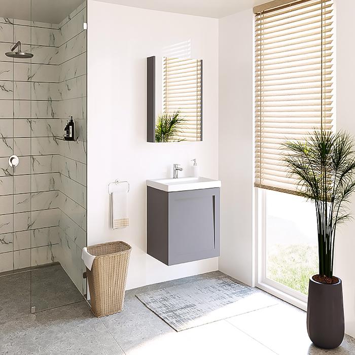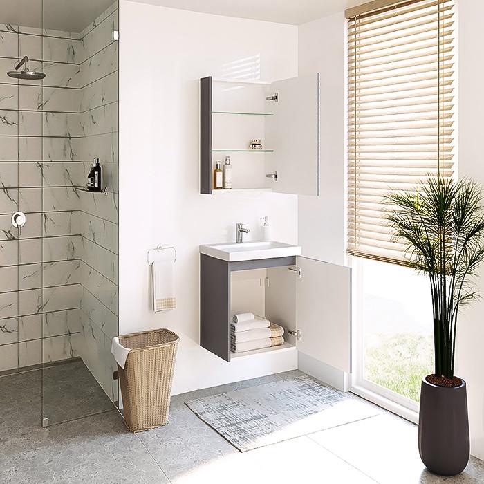 Galite rinktis iš dviejų šios spintelės spalvų – matinės baltos ir matinio tamsaus sidabro (NCS kodas: S 4502-B).