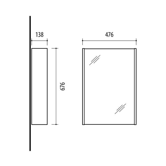 476 x 676 x 138 mm (plotis, aukštis, gylis)