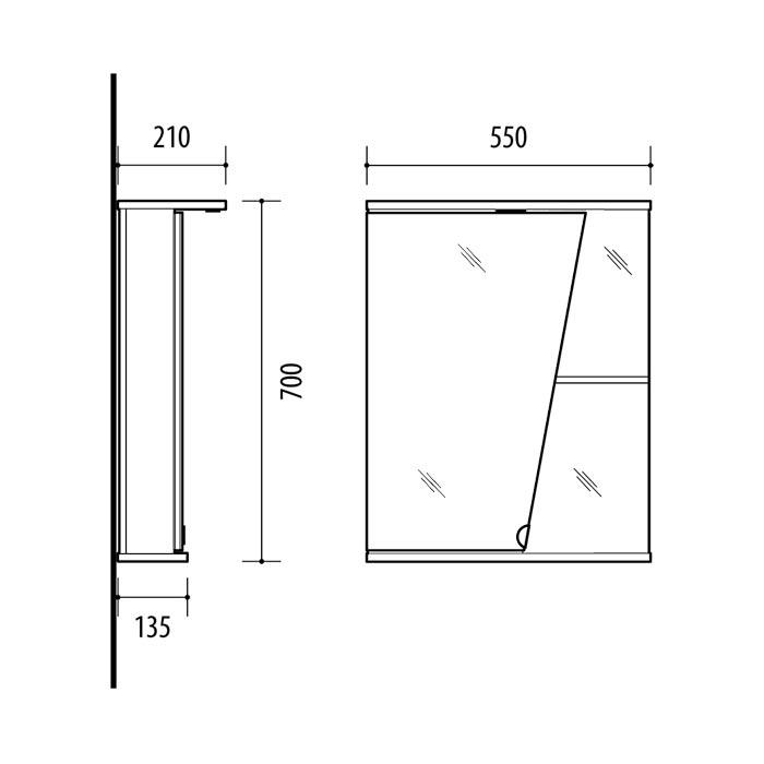 550 x 700 x 210 mm (plotis, aukštis, gylis)