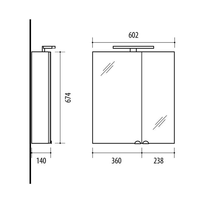 602 x 674 x 140 mm (plotis, aukštis, gylis)