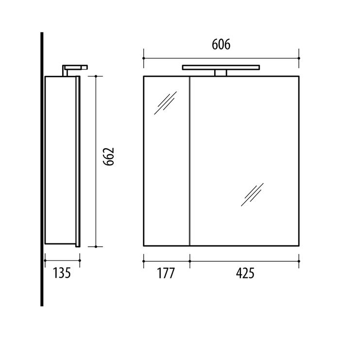 606 x 662 x 135 mm (plotis, aukštis, gylis)