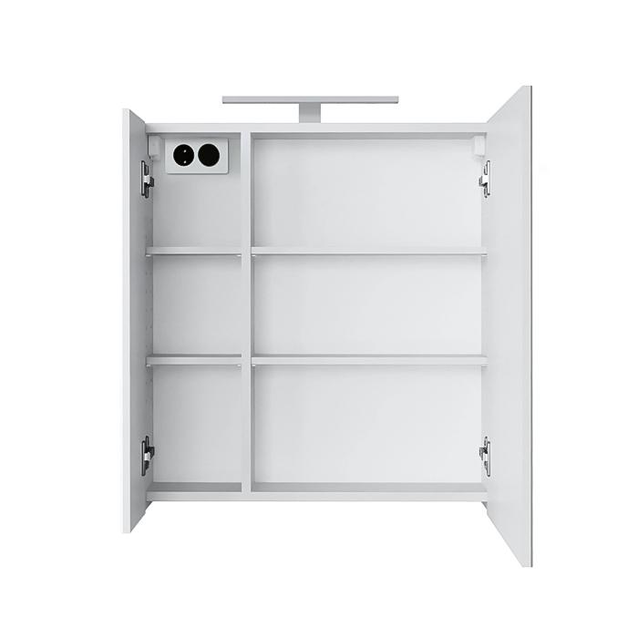 Estetiška ir funkcionali vonios kambario spintelė su LED apšvietimu. Spintelėje suprojektuotos visos svarbiausius poreikius atspindinčios detalės: veidrodis, LED apšvietimas, kištukinis lizdas bei reguliuojamo aukščio lentynėlės. Minimalistinė baldo forma leidžia spintelę pritaikyti įvairaus stiliaus interjere. Spintelėje įmontuoti švelniai užsidarantys lankstai, kurių dėka durelės varstomos itin tyliai ir sklandžiai. Šią baldų furnitūrą ne tik malonu naudoti – ji taip pat pasižymi ilgesniu naudojimo laikotarpiu, lyginant su įprasta furnitūra. Be to, baldo gamybos metu lankstai yra ne įgręžiami, o įpresuojami – tokiu būdu įtvirtinami tiksliai ir patvariai. Tai ypač svarbu, nes vonios baldai yra intensyviai eksploatuojami, todėl privalo būti patvarūs. Vonios spintelė padengta poliuretaniniais dažais, kurių dėka nudažyti paviršiai yra nepriekaištingai lygūs, lengvai valomi, atsparūs drėgmei, o spalva ir blizgesys ilgai išlieka nepakitę.