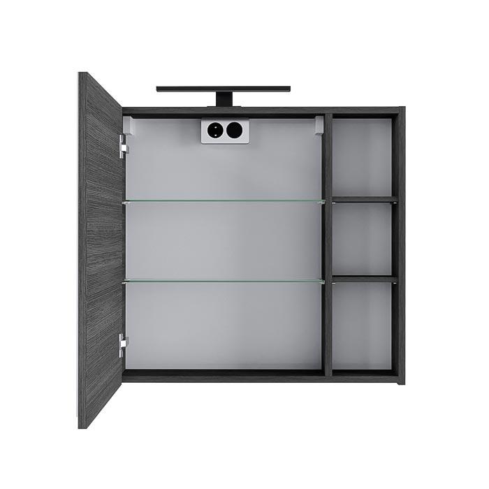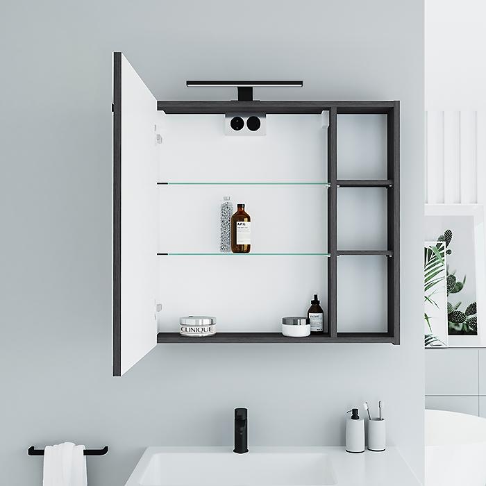 Pakabinama vonios spintelė su veidrodinėm durelėm, LED šviestuvėliu ir kištukiniu lizdu.