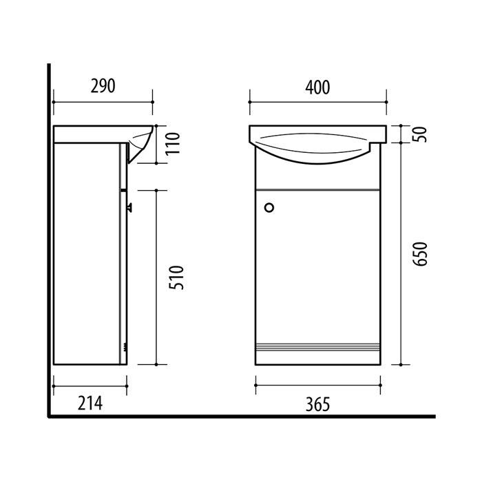 365 x 650 x 214 mm (plotis, aukštis, gylis)
