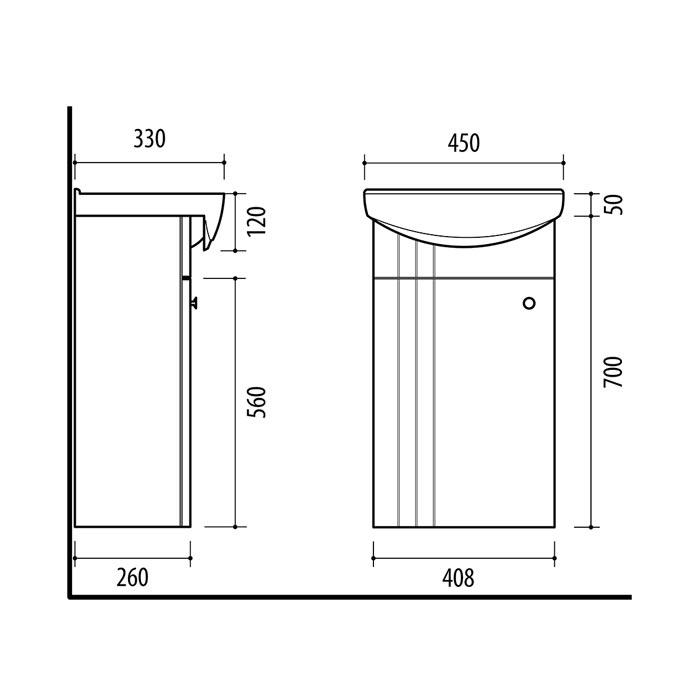 408 x 700 x 260 mm (plotis, aukštis, gylis)