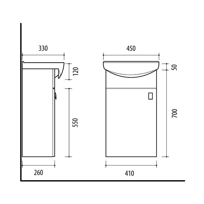Pakabinama vonios spintelė su durelėm. Spintelė parduodama kartu su praustuvu RIVA45. Sifonas ir vandens maišytuvas į komplektaciją neįeina.