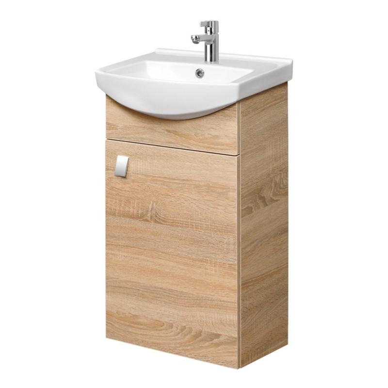 Ši kompaktiška, estetiška ir funkcionali vonios kambario spintelė su praustuvu sukurta patogiam kasdieniam naudojimui. Tobulai subalansuotas dydis suteikia galimybę ją pakabinti net ir pačioje mažiausioje erdvėje, o minimalistinė forma leidžia spintelę pritaikyti įvairaus stiliaus interjere. Pakabinamos konstrukcijos dizainas gali sumaniai pasitarnauti išnaudojant kiekvieną jūsų vonios kambario centimetrą. Spintelėje įmontuoti švelniai užsidarantys lankstai, kurių dėka durelės varstomos itin tyliai ir sklandžiai. Šią baldų furnitūrą ne tik malonu naudoti – ji taip pat pasižymi ilgesniu naudojimo laikotarpiu, lyginant su įprasta furnitūra. Be to, baldo gamybos metu lankstai yra ne įgręžiami, o įpresuojami – tokiu būdu įtvirtinami tiksliai ir patvariai. Tai ypač svarbu, nes vonios baldai yra intensyviai eksploatuojami, todėl privalo būti patvarūs. Spintelėje rasite reguliuojamo aukščio lentynėlę, kuri gali padėti patogiai susidėti įvairių dydžių vonios reikmenis ir jų pakuotes. Spintelė pagaminta iš kokybiškų medžiagų, kurios yra lengvai prižiūrimos, pasitelkiant įprastas valymo priemones. Sonoma Oak rašto laminatas gali padėti sukurti gaivaus ir šviesaus vonios kambario įspūdį.